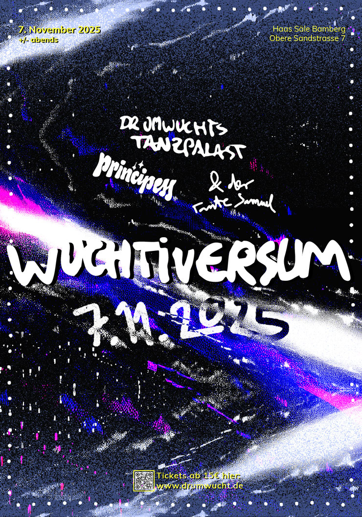 Das sind 6 Wuchtis auf der Bühne (& drumherum) und ganz viele galaktische Extrafeine aus den Weiten des bandin- und externen Kosmos. Auf unseren Reisen durch die Weiten der wilden engen Räume zahlreicher Parallelwelten haben wir Freunde und Freundinnen erkannt und so manche Musik in unseren Tornistern gesammelt, die wir euch am 7. November 2025 zum zweiten Mal in live und persona vorstellen möchten.
